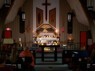 Occasionally we hold worship, Holy Eucharist Rite II, in the Garden Chapel.